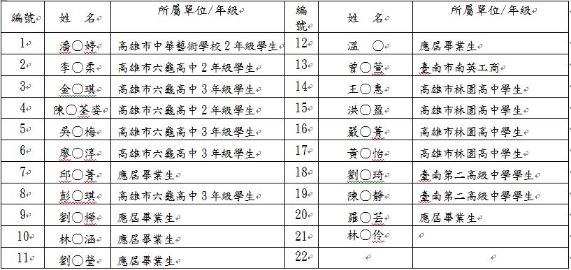 107年潛力選手(女子組)名單