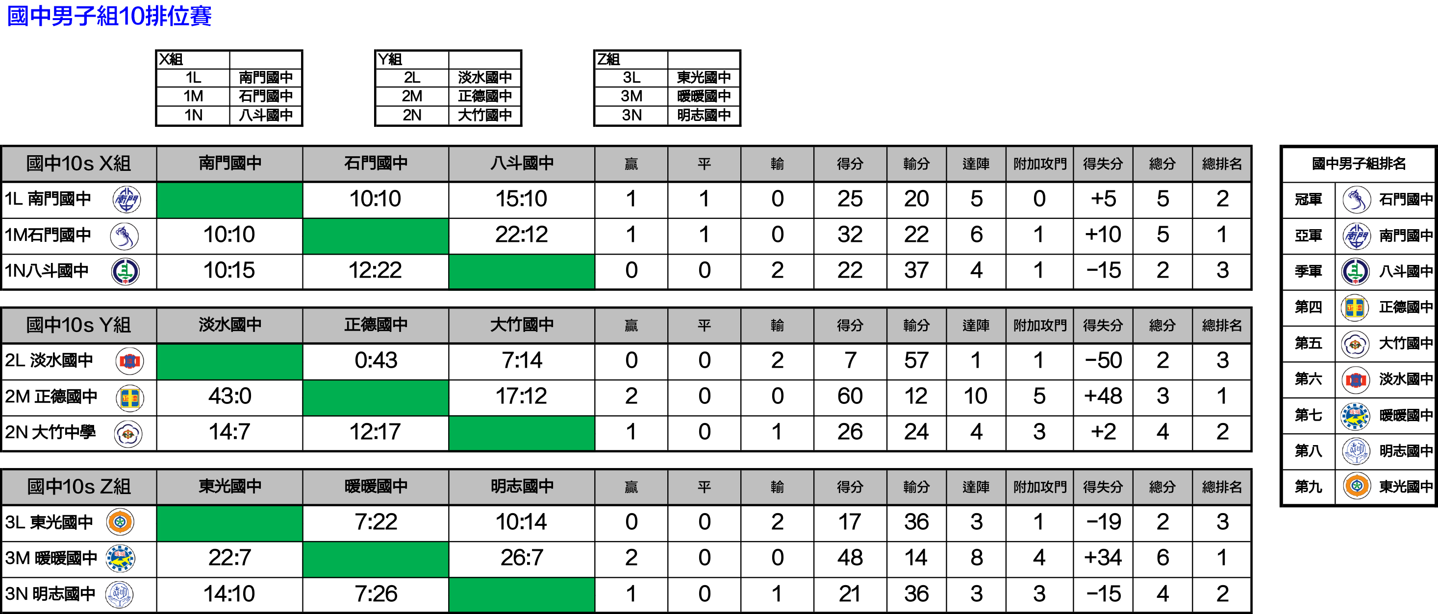 國中男子組10s成績