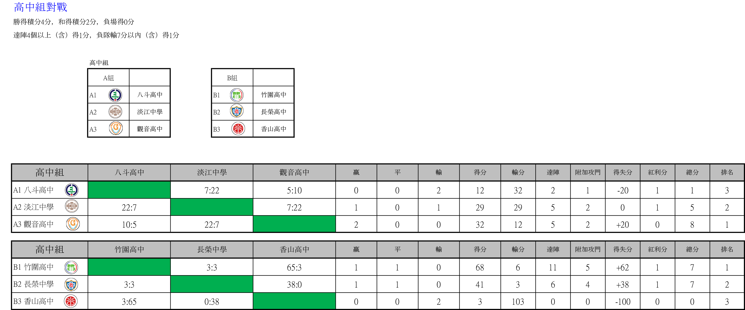 高中組暫時排名