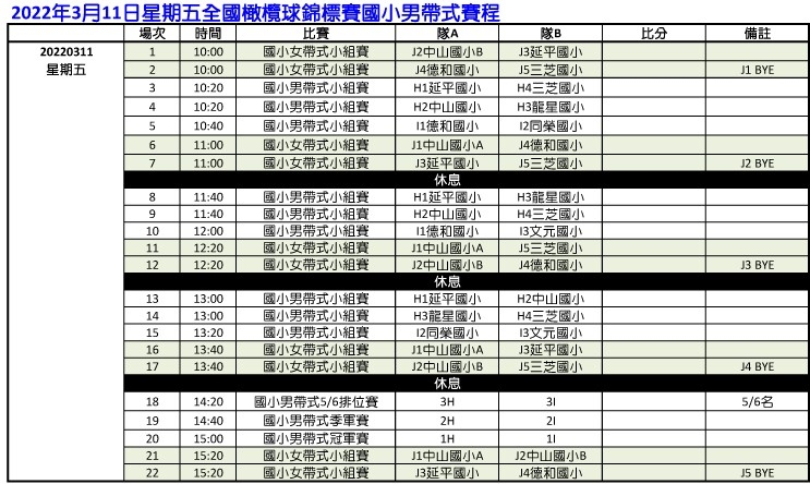 110學年度第76屆全國橄欖球錦標賽國小帶式賽程