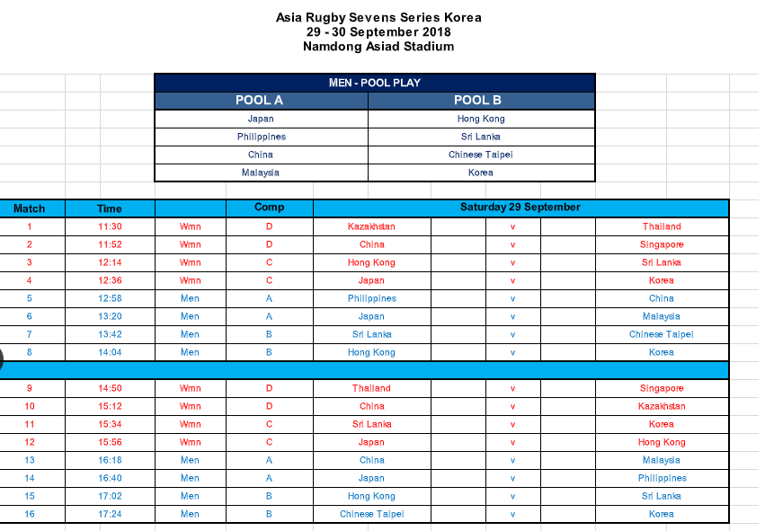 最新消息│2018年亞洲7人制巡迴賽-韓國站 賽程公告
