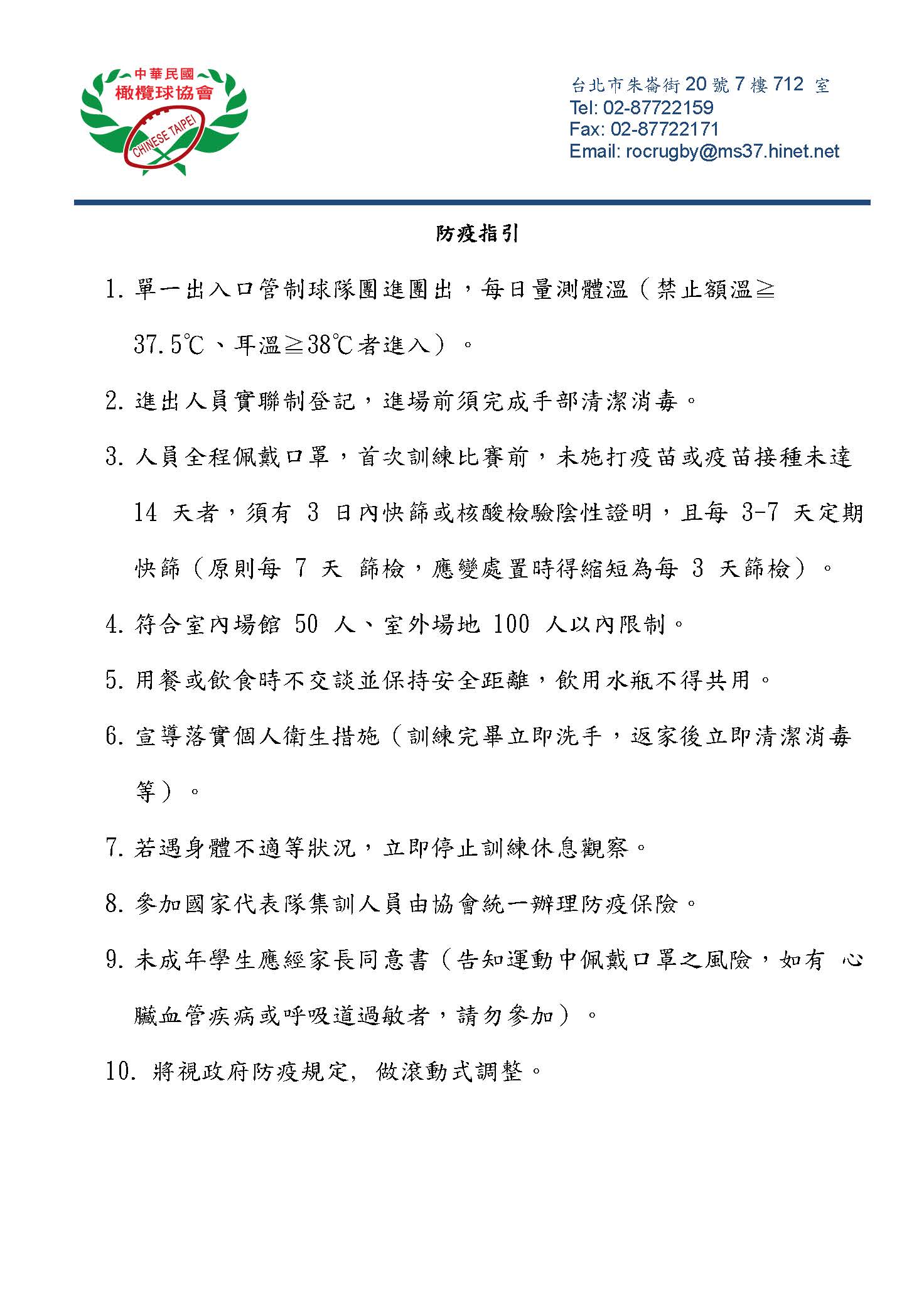 最新消息│中華民國橄欖球協會-防疫指引