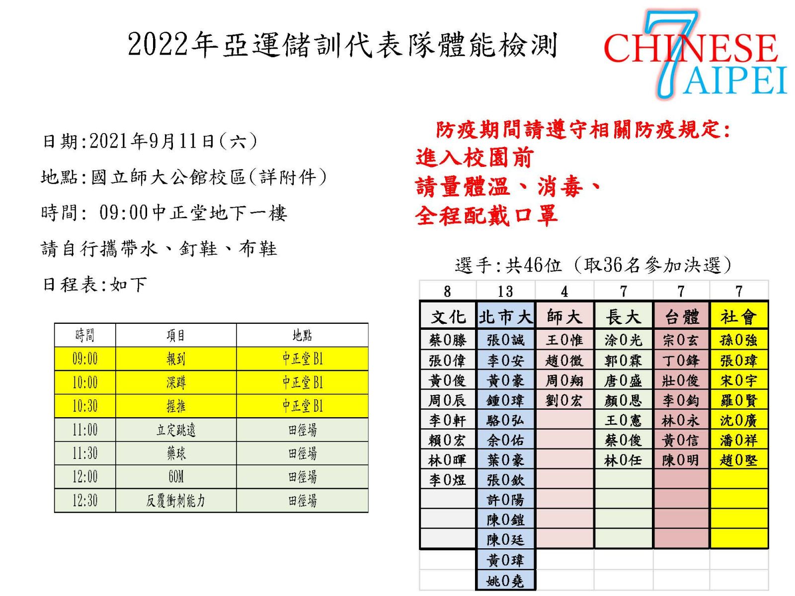 最新消息│2022年亞運儲訓代表隊體能檢測資訊