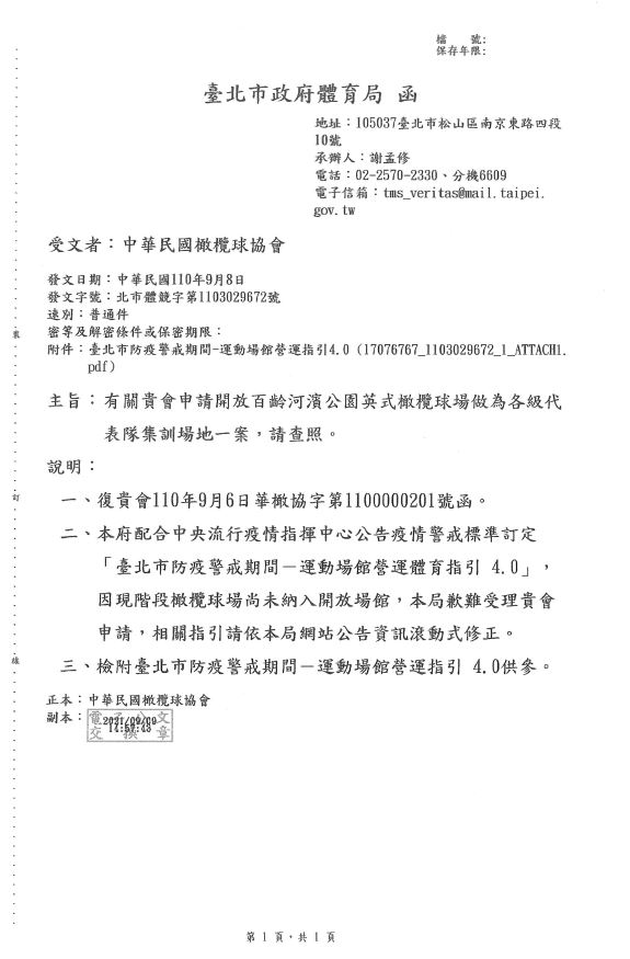 最新消息│臺北市百齡橄欖球場尚未核准開放